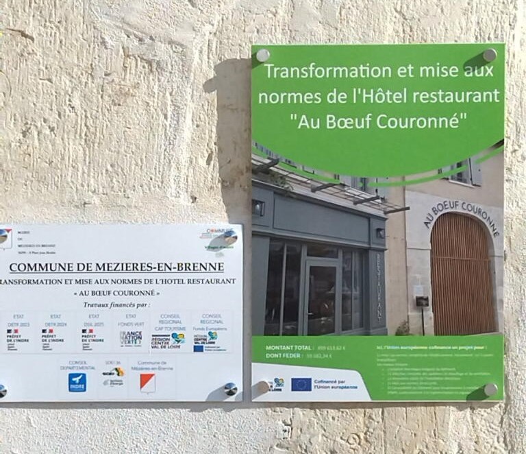 - L’Hôtel-restaurant « Au Bœuf couronné » a été inauguré le 29 août dernier en présence de Madame la Sous-Préfète du Blanc, Arlène VIVIEN, qui représentait Monsieur le Préfet Thierry LANXADE , des sénatrices et députés, du Président du Département de l’Indre, des architectes, de représentants des entreprises soumissionnaires, d’élus locaux et d’une population importante.